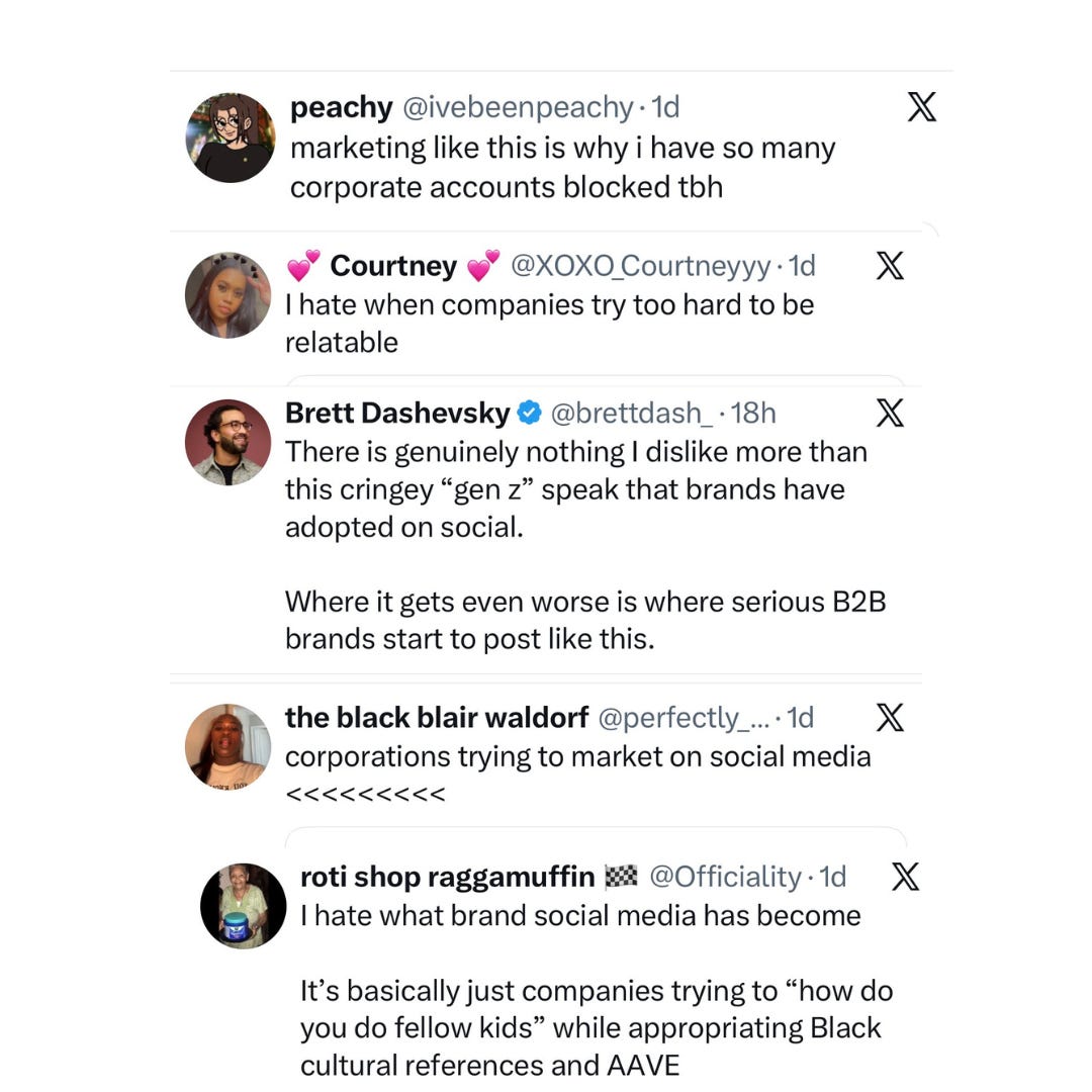 I spotted more negative reactions to the post than positive. People specifically called out the post for being cringe and echoed their distaste for brands trying to be relatable with “Gen Z Speak.”